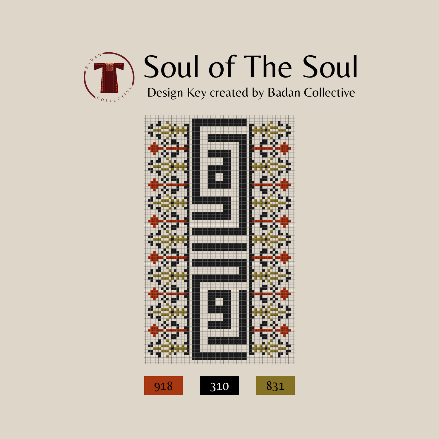 This design incorporates Arabic calligraphy that translates to "Soul of The Soul." The motifs on the sides are flower motifs originating from the Hebron area.