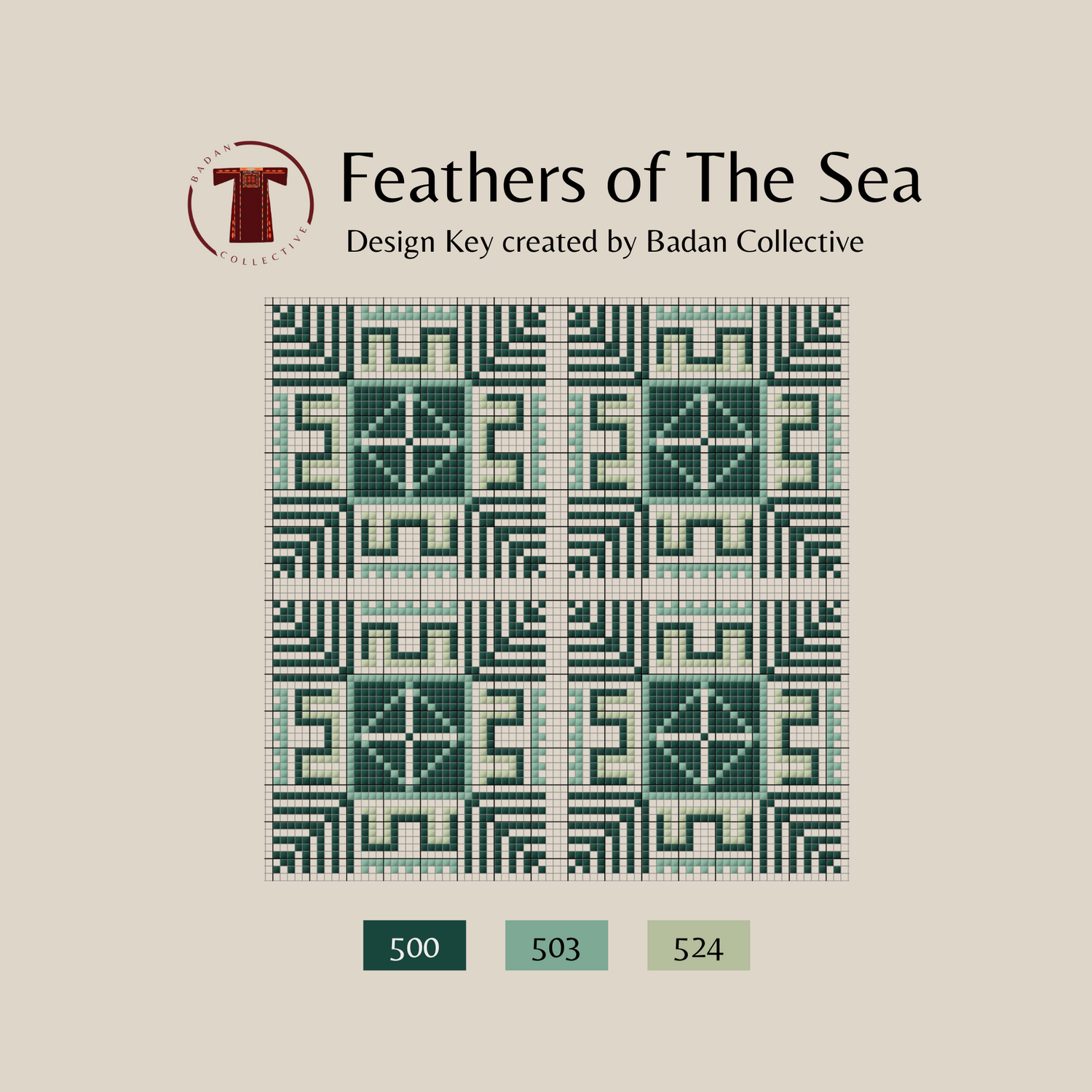 This motif is called the "Feather Disc" and originates from the Ramallah region. It is traditionally stitched in red, but we've taken a spin on it and added a sea foam color scheme.
