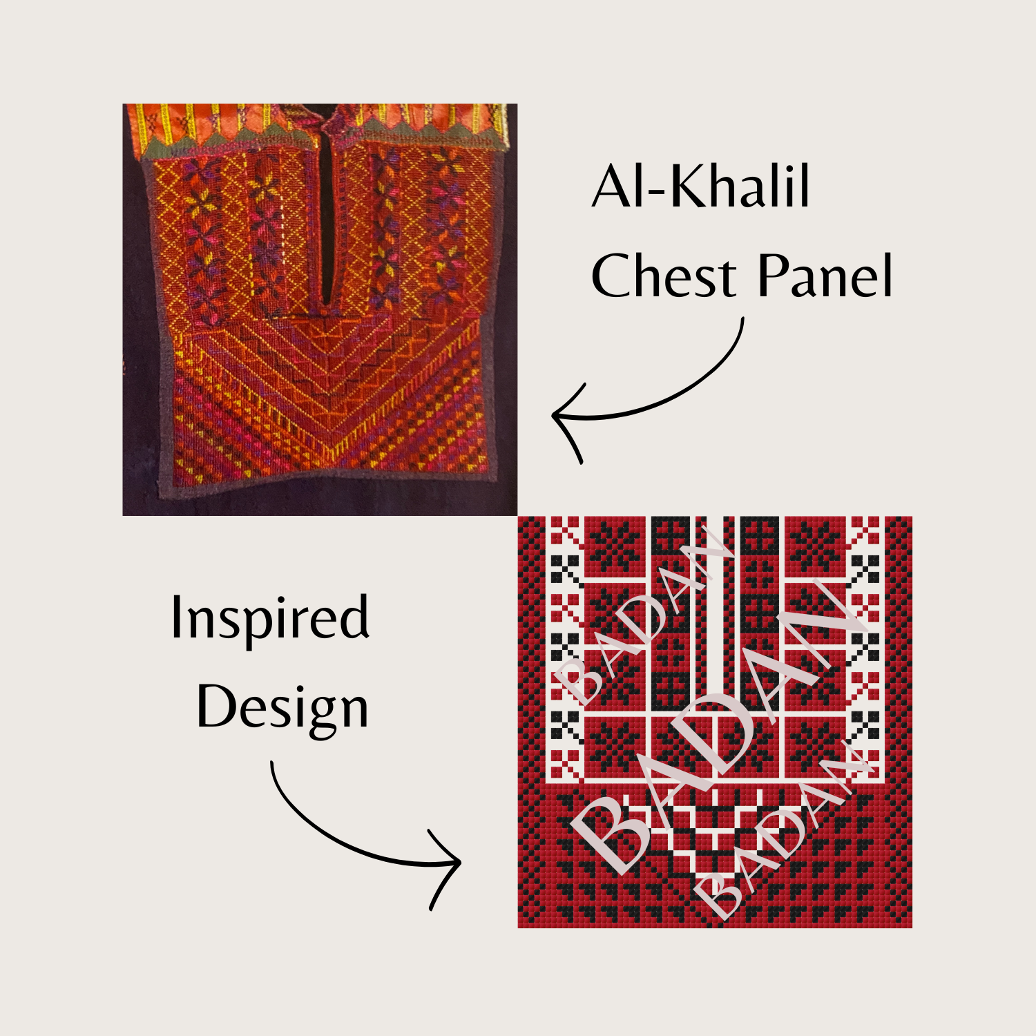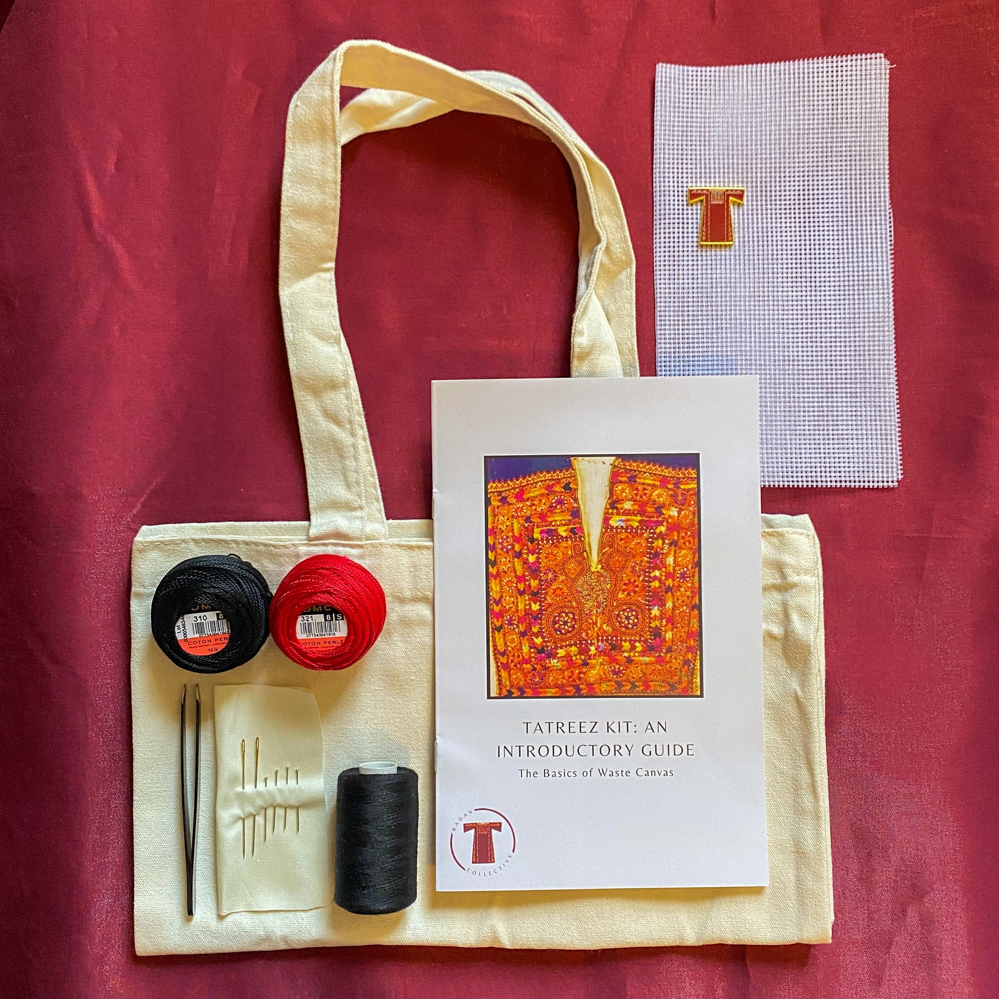 This Waste Canvas kit is for those who are familiar with the mechanics of tatreez or embroidery and would like to take their skill to the next level. The design is inspired by chest panels from Al-Khalil dresses and incorporates motifs practiced in the region, curated with creative license.