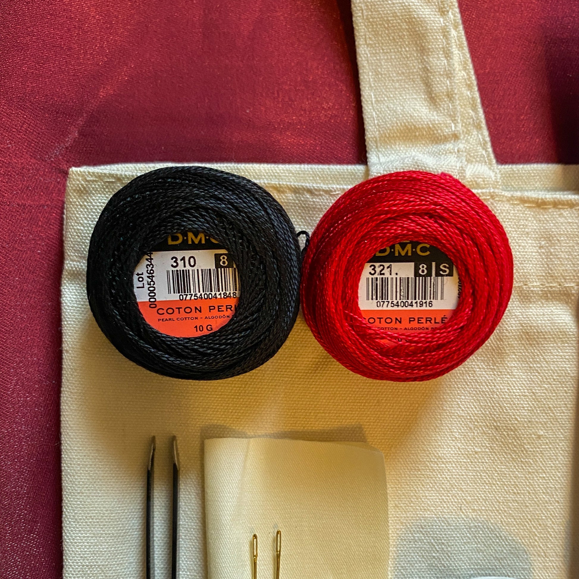 - 2 DMC Pearl Cotton Thread Balls (Red and Black)